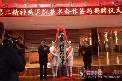 武漢市第二精神病醫(yī)院院長周華、副院長戢漢兵、工會主席高海兵、湖北科技學(xué)院附屬第二醫(yī)院黨委書記劉祖松、業(yè)務(wù)副院長黃翠萍博士、赤壁市衛(wèi)計局副局長葉應(yīng)福、通山縣安康精神病醫(yī)院院長祝家勝、通城縣精神病防治所所長李娟、崇陽縣精神病防治所所長李濤、嘉魚縣人民醫(yī)院精神科主任許祖峰、同濟赤壁醫(yī)院總裁楊治國、院長皮志杰、副院長錢佐林、唐強等出席了揭牌儀式。