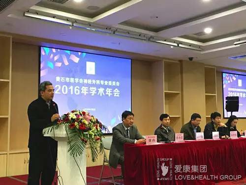 黃石市愛康醫(yī)院總裁呂永紅先生、湖北省神經(jīng)外科主委陳謙學(xué)對各醫(yī)院來賓致歡迎辭。