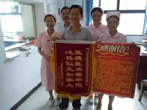 而當其中一位護士拿著治療盤出去做治療時,那位病人叫了聲“小劉,在忙啊!”護士這才發(fā)現(xiàn)這位原來是以前在科室做孔鏡手術(shù)的劉先生。再仔細看過去才發(fā)現(xiàn)劉先生并非“單獨”前來,而是帶著錦旗以及自己親筆書寫的對同濟赤壁醫(yī)院疼痛科全體工作人員的感謝信。
