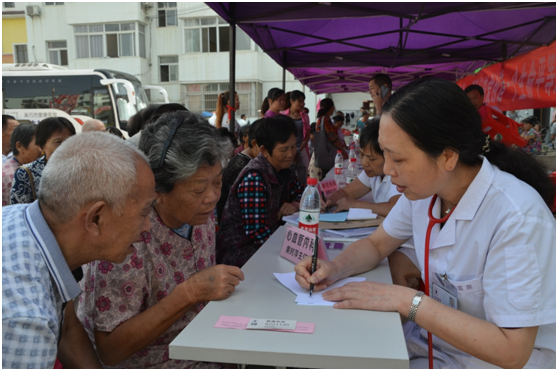 體檢車醫(yī)護人員為居民進行“愛心體檢”
