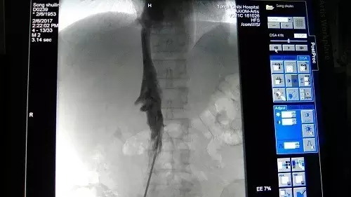 近日,同濟赤壁醫(yī)院腫瘤科一患者,男,64歲,由于病情重長期臥床等原因,出現(xiàn)左下肢水腫進行性加重,彩超提示左下肢深靜脈血栓形成,給腫瘤專科治療帶來困境,更有不可預(yù)知的致死性肺栓塞發(fā)生可能,。經(jīng)介入科會診,武漢同濟醫(yī)院介入科主任王南教授親臨指導(dǎo),于2017年2月6日為患者成功進行了介入下腔靜脈過濾器植入術(shù)。