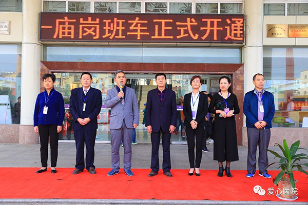 2017年10月20日,廟崗班車開通儀式在宋慶齡愛心醫(yī)院門診大樓前隆重舉行,這標志著宋慶齡愛心醫(yī)院免費班車服務正式對廟崗鄉(xiāng)群眾兌現(xiàn)。宋慶齡愛心醫(yī)院總裁呂永紅、院長湯增富、業(yè)務院長安曙光、醫(yī)務部總監(jiān)王勇、運營總監(jiān)衛(wèi)芳、發(fā)展部總監(jiān)宋潔、廟崗鄉(xiāng)衛(wèi)生院院長陶學良出席了本次活動。