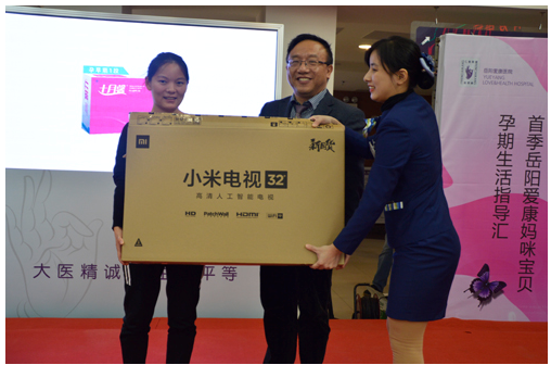 岳陽(yáng)愛康醫(yī)院發(fā)改部總監(jiān)陳健和特等獎(jiǎng)孕媽合影