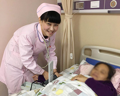 呂莉護士長給患者測量血壓