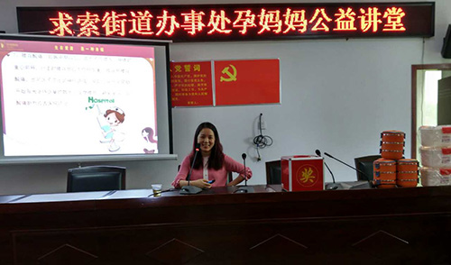 李蘭芳護(hù)士長進(jìn)行“孕媽媽公益講堂”之“高危孕產(chǎn)婦知識(shí)講座”