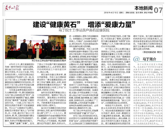 馬丁院士工作站落戶黃石愛康醫(yī)院揭牌