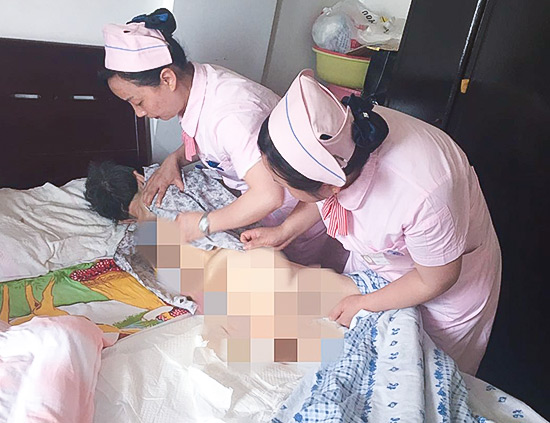 馬婆婆曾于2017年12月23日因“突發(fā)意識障礙并失語兩小時余”入院,入院后急查CT后,我院以“腦出血”收入院,入院后立即行左側(cè)顱骨錐顱鉆孔引流術(shù),術(shù)后患者在ICU病房監(jiān)護(hù)了近一個月后,轉(zhuǎn)入神經(jīng)外科繼續(xù)治療,經(jīng)過四個多月天的治療,患者病情穩(wěn)定,但仍處于嗜睡狀,生活完全無法自理,根據(jù)患者的病情,外科綜合護(hù)士長李寒梅及傷口??谱o(hù)士張靜對馬婆婆進(jìn)行了全身檢查,檢查中發(fā)現(xiàn)馬婆婆因?yàn)榛疾r間長,身體素質(zhì)較差,受壓部位皮膚紅腫,??谱o(hù)士張靜馬上對患者的家屬進(jìn)行了一系列的指導(dǎo),包括怎樣定時翻身,如何翻身,翻身時的注意事項(xiàng)等。接著外科綜合護(hù)士長李寒梅針對馬婆婆的營養(yǎng)狀態(tài)對家屬進(jìn)行詳細(xì)的交待,包括飲食搭配,進(jìn)食時間及晚間護(hù)理等等,爹爹連連點(diǎn)頭表示一定配合。