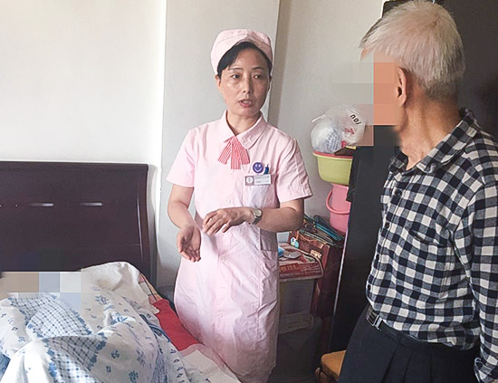 鶯飛草長的五月天,黃石愛康醫(yī)院神經(jīng)外科護(hù)士長張金枝及外科綜合護(hù)士長李寒梅、傷口??谱o(hù)士張靜一行來到了因疾病而臥床近5個月的馬婆婆家,一進(jìn)門,便可以看到躺在床上的馬婆婆,因疾病的折磨而消瘦的身形,神經(jīng)外科護(hù)士長張金枝走到床前拉起馬婆婆的手,不停地呼喚馬婆婆,雖然馬婆婆不能應(yīng)聲回答我們,但從她的眼神中,可以看得出她對愛康護(hù)理團(tuán)隊(duì)期盼。