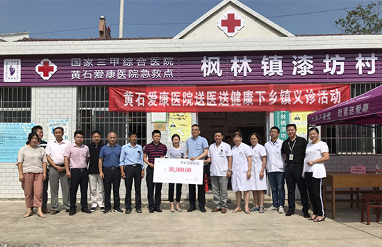 愛康醫(yī)院還向陽新縣楓林鎮(zhèn)漆坊村捐贈現(xiàn)金30000元,用于村衛(wèi)生室的基礎(chǔ)建設(shè)。