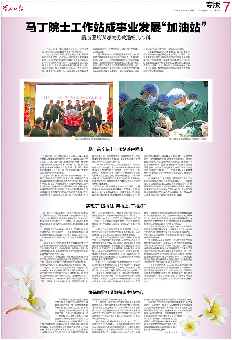 在黃石愛康醫(yī)院的決策者看來,馬丁院士工作站就如同是一個(gè)提升診療技術(shù)水平的“加油站”,這里聚集著華中科技大學(xué)同濟(jì)醫(yī)院婦產(chǎn)科學(xué)系優(yōu)質(zhì)豐富的醫(yī)療資源。利用這筆寶貴的資源,通過產(chǎn)、學(xué)、研的深度融合,醫(yī)院不但要做精做優(yōu)婦科,而且還規(guī)劃將產(chǎn)科、生殖科、兒科、新生兒科等相關(guān)臨床專科進(jìn)一步做大做強(qiáng),最終推動(dòng)醫(yī)院整體臨床診療工作再上新臺(tái)階、再煌。
