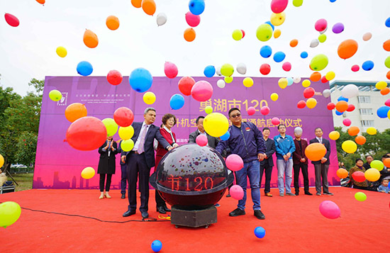 隨后,隨著余榮光書記宣布“巢湖市120直升機(jī)空中醫(yī)療救援通航正式啟動”的話音,李雪、余榮光、呂永紅和邵名升的手一起按向啟動球,彩色氣球同時升向空中,場下更是響起雷鳴般的掌聲。