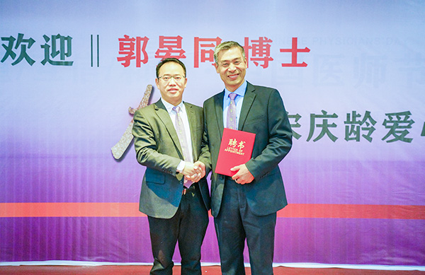愛康集團(tuán)首席人才官胡銀龍為郭晏同博士頒發(fā)聘書