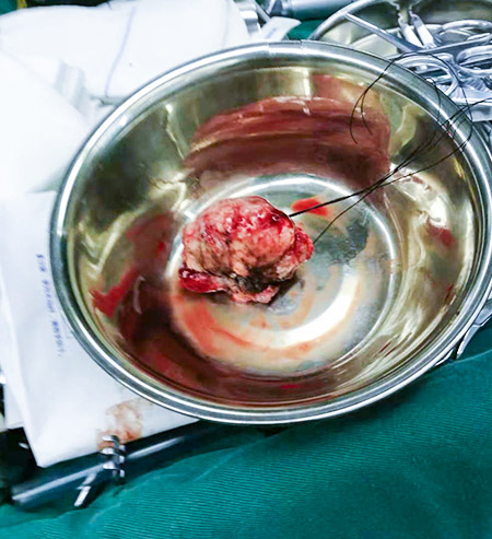 如雞蛋大小的腦膜瘤被完整切除