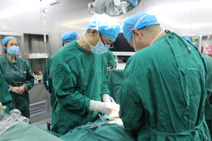 因徐師傅患有嚴(yán)重的心臟病,普外科郭晏同博士與心血管內(nèi)科主任胡勇博士仔細(xì)研究病情,制定了周密手術(shù)方案,反復(fù)完善術(shù)前準(zhǔn)備工作。手術(shù)前一天胡博士對郭博士說,我愿陪你一起上手術(shù)臺,于是兩位博士一同上了手術(shù)臺。