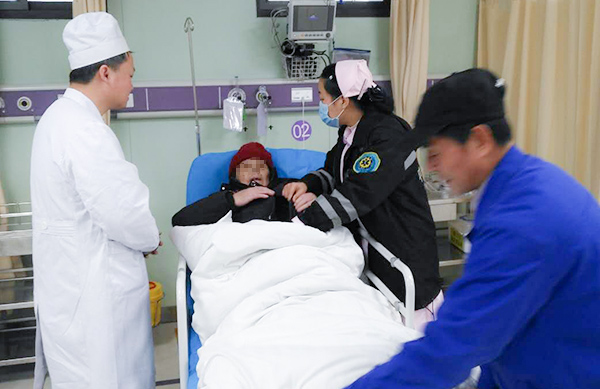 2018年12月31日中午12時(shí)許,82歲的馬婆婆在家突感胸悶、咳嗽,馬婆婆的兒子懷著一絲希望撥通了急診科的電話,在了解事情經(jīng)過后,急診科醫(yī)生葉軍及護(hù)士汪子韻立即上了急救車,頂著風(fēng)雪為馬婆婆搭建這條免費(fèi)愛心接送之路。