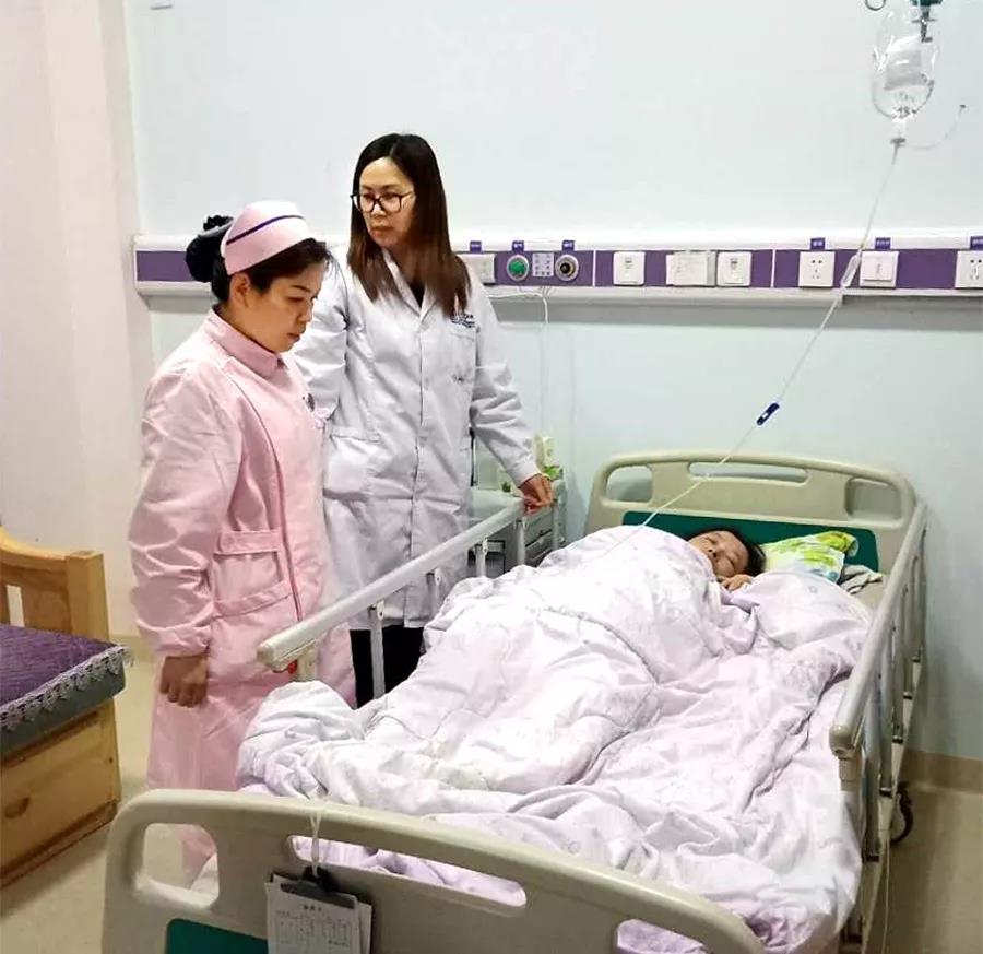 ▲ 高君萍主任及產(chǎn)房陳紅嬌護(hù)士長查看唐女士恢復(fù)情況