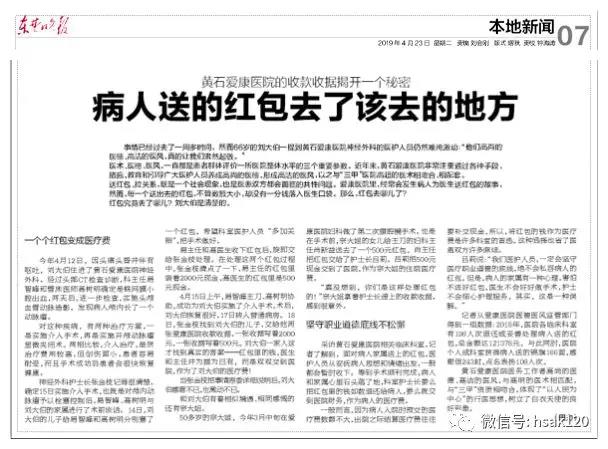 采訪黃石愛康醫(yī)院相關臨床科室,記者了解到,面對病人家屬送上的紅包,醫(yī)護人員從安撫病人思想和情緒出發(fā),一般都會暫時收下。等到手術(shù)順利完成,病人和家屬心里石頭落了地,科室護士長要么把紅包里的錢如數(shù)退還給病人,要么就交到醫(yī)院財務,作為病人的醫(yī)療費。