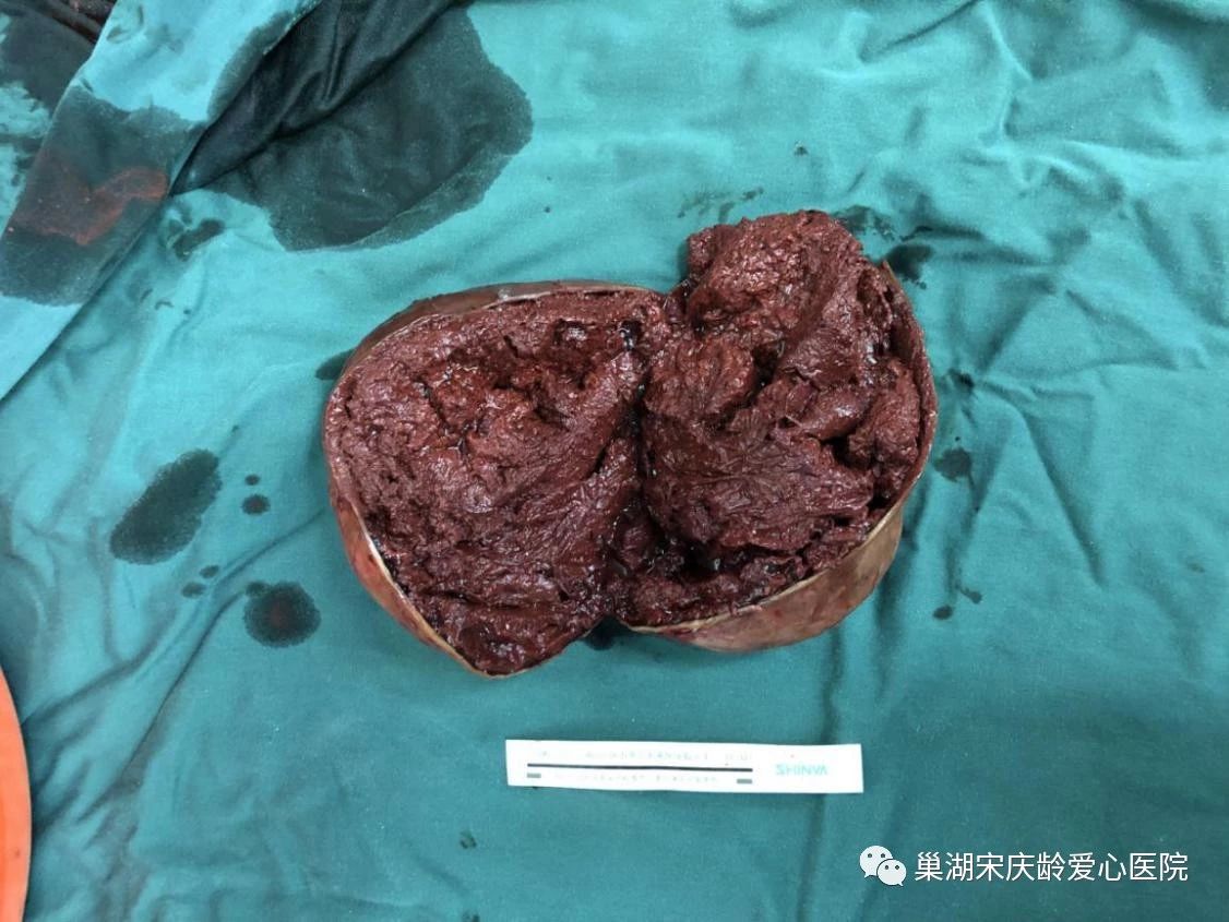 郭博士將患者大腿左側(cè)的似是小西瓜般大小的包塊摘除,切開(kāi)一看,竟然全是血塊,不是腫瘤。