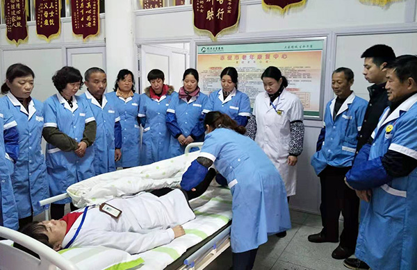 2017年中心成為咸寧市首家醫(yī)養(yǎng)結(jié)合試點(diǎn)單位,醫(yī)養(yǎng)結(jié)合是一種有病治病,無(wú)病療養(yǎng),醫(yī)療和養(yǎng)老相結(jié)合的新型養(yǎng)老模式。全國(guó)各級(jí)民政系統(tǒng)及同行機(jī)構(gòu)領(lǐng)導(dǎo)來(lái)院參觀指導(dǎo)。為了提高工作人員素質(zhì),做好優(yōu)質(zhì)服務(wù),我們對(duì)全體工作人員實(shí)行崗前培訓(xùn),培訓(xùn)結(jié)業(yè)后經(jīng)考試合格由市勞動(dòng)局發(fā)給家政護(hù)理上崗證,并從中擇優(yōu)上崗,護(hù)理人員明確崗位職責(zé),實(shí)行獎(jiǎng)懲考核。規(guī)定了文明禮貌用語(yǔ),禮儀行為規(guī)范。護(hù)理人員必須遵守職業(yè)道德規(guī)范,執(zhí)行各項(xiàng)規(guī)章制度,院內(nèi)對(duì)工作人員的服務(wù)質(zhì)量實(shí)行百分考核制度,由入住老人評(píng)價(jià)打分,納入工資收入分配。工作人員的服務(wù)態(tài)度,服務(wù)質(zhì)量接受入住老人的監(jiān)督。