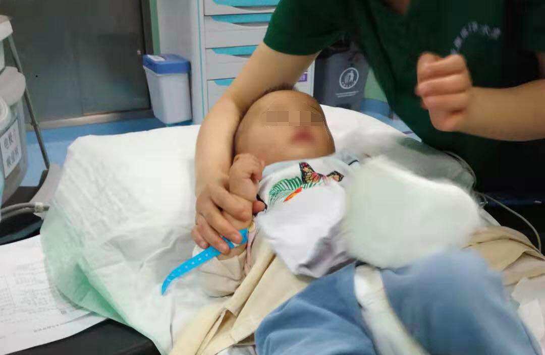 一歲的陽(yáng)陽(yáng)來(lái)這邊之前,小手指已經(jīng)在當(dāng)?shù)蒯t(yī)院做過(guò)簡(jiǎn)單的包扎。是通過(guò)綠色通道,直接住進(jìn)的住院部。武穴到黃石,救護(hù)車(chē)往返需要四小時(shí)。這四小時(shí),傷口一直在出血,因?yàn)樘弁?,我?jiàn)到孩子的時(shí)候,他已經(jīng)哭得精疲力竭了,家屬也哭成一團(tuán)。