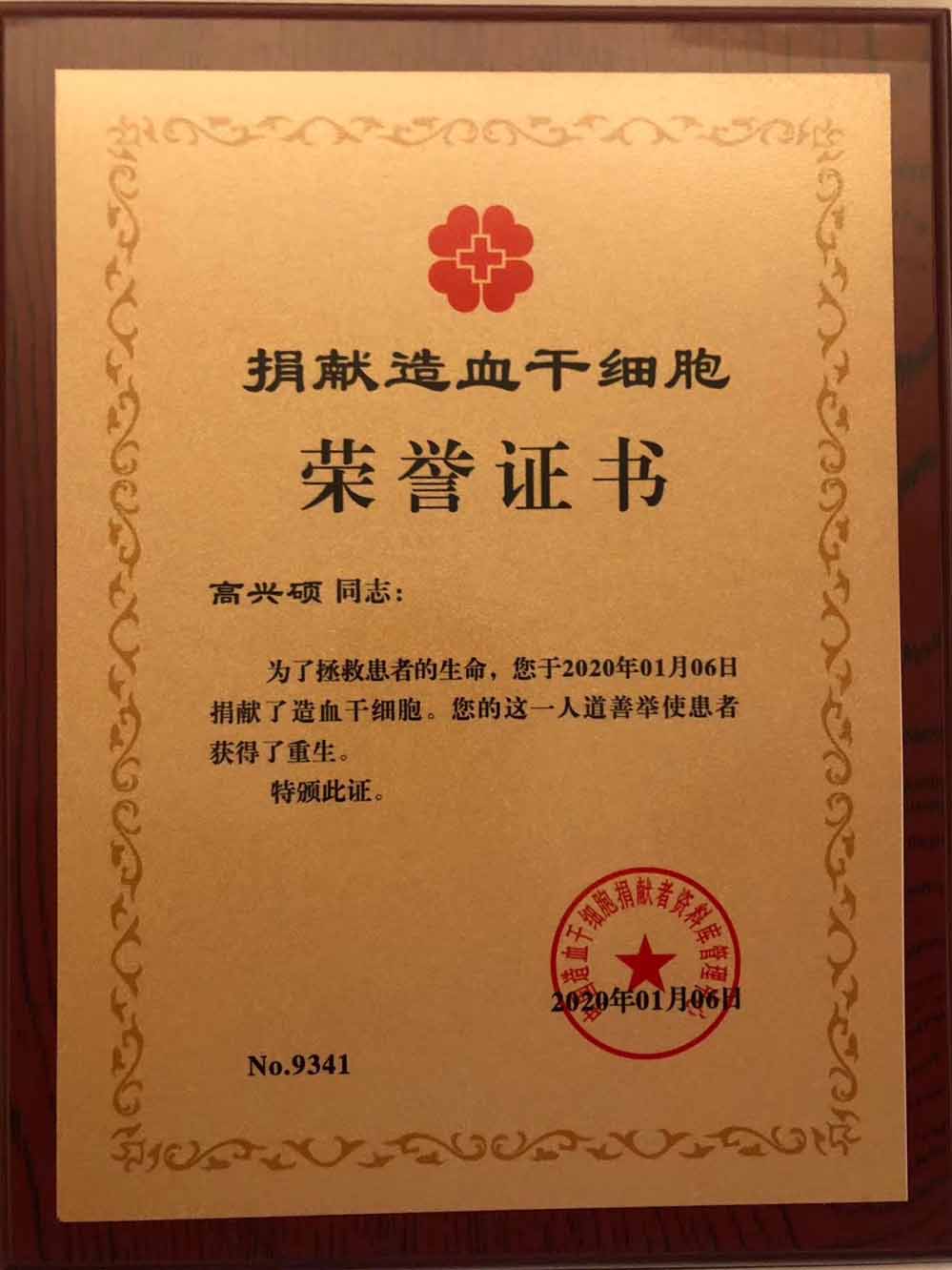高興碩醫(yī)生在捐獻(xiàn)造血干細(xì)胞