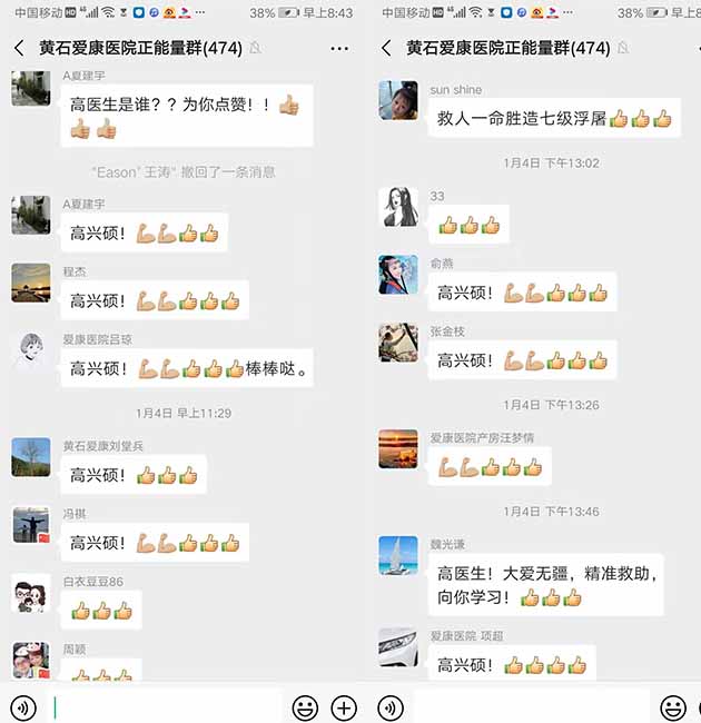 黃石愛康醫(yī)院副院長田富明表示,高興碩醫(yī)生用行動踐行了“用我們的愛創(chuàng)造一個生命平等的醫(yī)療環(huán)境”的愛康使命,他為患者家庭帶去了生的希望。無相布施后的幸福感讓我們看到他崇高的品格,他的行為彰顯了愛康價值觀----“大醫(yī)精誠”是我們的追求目標(biāo),對每一位病患負(fù)責(zé)是我們的行為準(zhǔn)則!高興碩是我們愛康人,他是我們的驕傲。