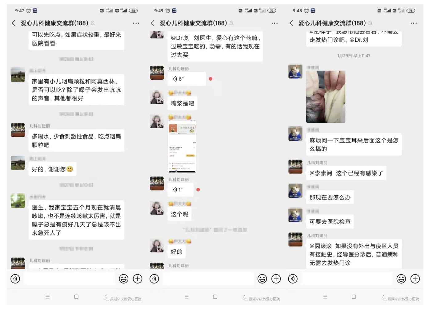 為滿足疫情期間不方便出門的就診患兒求醫(yī)需求,我們兒科科室倡導建立了愛心兒科健康交流群,為大家傳授育兒知識,做健康科普和推廣用藥常識,免費在線咨詢問診。