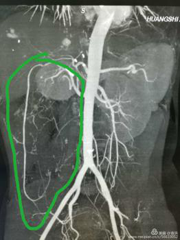 經(jīng)血管重建提示:腫瘤供血豐富。泌尿外科建議:腫瘤來(lái)源于腎竇,手術(shù)風(fēng)險(xiǎn)極高。手術(shù)過(guò)程中,可能出現(xiàn)損傷動(dòng)脈出血,導(dǎo)致患者休克;取瘤后腹腔壓力下降,造成血壓下降,休克等風(fēng)險(xiǎn),術(shù)前須經(jīng)介入科行右腎血管栓塞治療。