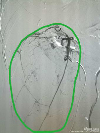 (介入栓塞后,腫瘤血液供應(yīng)完全阻斷
