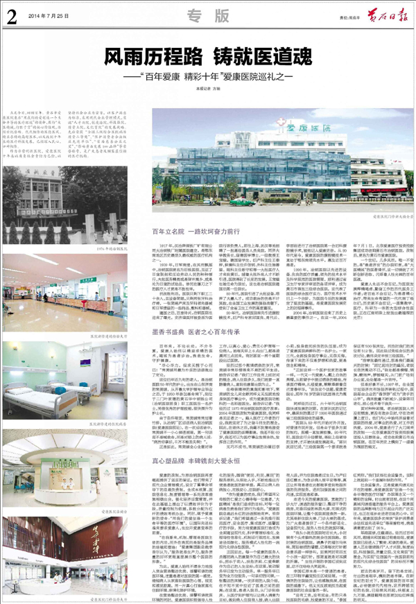 逝去的是歲月,留下的是忠誠;付出的是艱辛,鐫刻的是豐碑。在新世紀(jì)的陽光下,愛康醫(yī)院的百年醫(yī)魂,必將繼續(xù)代代相傳,這所跨越世紀(jì)的名院,已經(jīng)乘風(fēng)而起,扶搖直上九萬里,展翅翱翔在那更加燦爛輝煌的明天。