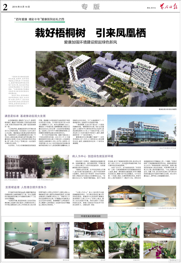 “‘患者滿意、社會(huì)認(rèn)同’是辦好一個(gè)醫(yī)院的最高標(biāo)準(zhǔn)。”夏曉蓮告訴記者,“我們正在建設(shè)的14層新手術(shù)大樓將在明年正式啟用,醫(yī)院會(huì)增加病床616張、9個(gè)層流手術(shù)室、19張床位的ICU和多功能學(xué)術(shù)報(bào)告廳。屆時(shí),愛康醫(yī)院將有一個(gè)飛躍式的提升。”