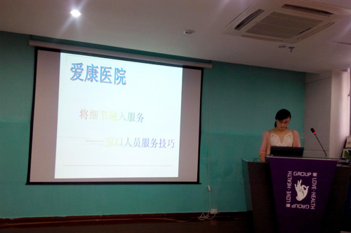 為了進一步規(guī)范黃石市愛康醫(yī)院窗口人員的行為,落實我院“卓越服務(wù),用愛感動!”的服務(wù)口號,9月23日下午,客服部組織了對全院窗口部門工作人員進行了服務(wù)禮儀和服務(wù)規(guī)范的培訓(xùn)。此次培訓(xùn)主要通過授課和現(xiàn)場演練,充分展示了醫(yī)院窗口人員鮮明的職業(yè)特點和獨有的風采??头藛T展示崗位服務(wù)規(guī)范,一一向大家演示了站姿、坐姿、行姿、表情、眼神、微笑、遞物等服務(wù)細節(jié)與規(guī)范的服務(wù)用語,她們以優(yōu)雅的禮儀,得體的舉止贏得了陣陣掌聲。