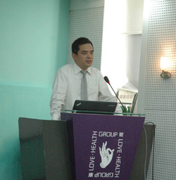 黃石市愛康醫(yī)院總裁呂永紅講話 集團常務(wù)副總裁李吾爾捐款