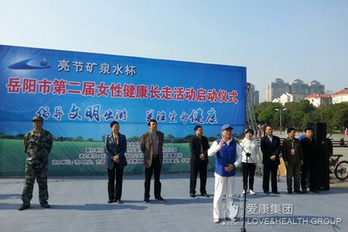 活動開始由岳陽市愛康醫(yī)院總裁雷鳴致開幕詞,市委宣傳部副部長、市文明辦主任許衛(wèi)國、湖南南山礦泉水有限公司總經(jīng)理鐘新炎分別進行講話,市旅游局代表陳帥宣讀倡議書,市委常委、市委宣傳部部長徐新啟宣布:岳陽市第二屆女性健康長走活動正式啟動!