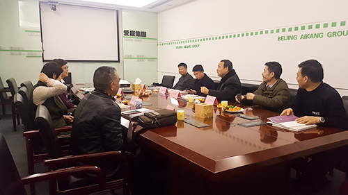 北京愛康集團(tuán)高級副總裁翟冕(左二)陪同赤壁市副市長饒自斌(左四)一行參觀北京愛康集團(tuán)總部