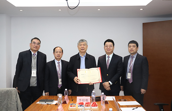 李培根院士愉快地接受集團(tuán)聘書并和集團(tuán)董事會(huì)成員合影留念