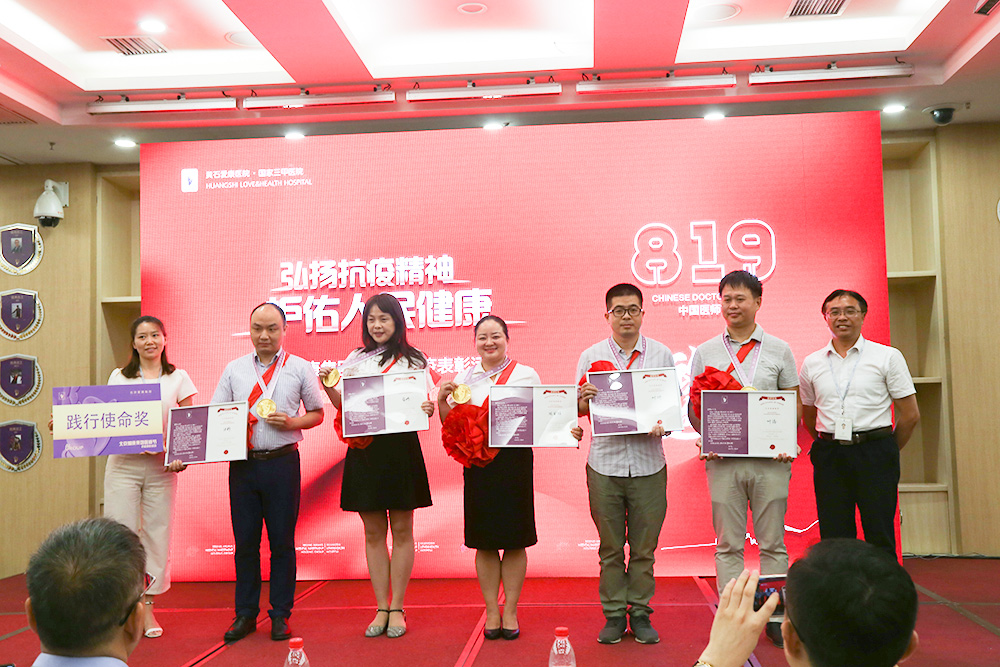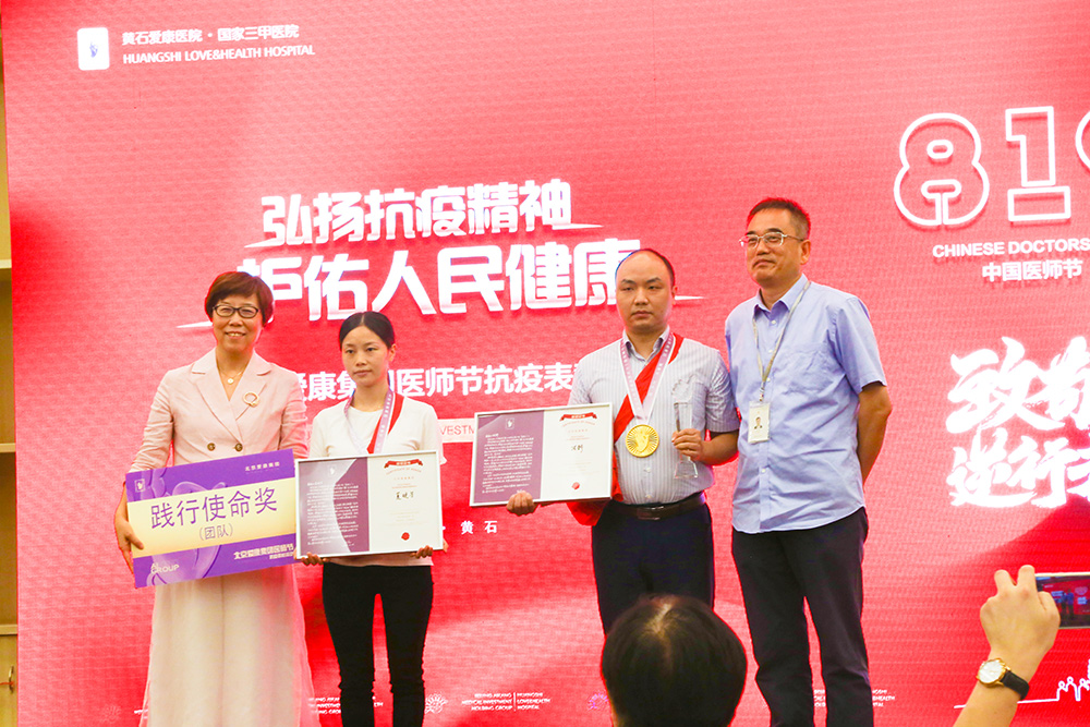 醫(yī)師節(jié)當(dāng)天下午16:00整,北京愛康集團(tuán)下屬黃石愛康醫(yī)院、社區(qū)集團(tuán)聯(lián)合舉辦了抗疫表彰活動(dòng),致敬所有參加黃石抗疫的英雄們。
