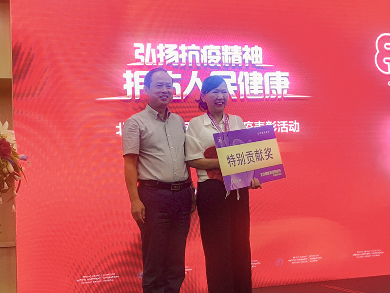 集團(tuán)高級(jí)副總裁翟冕在談到當(dāng)初看到黃石愛康醫(yī)院馳援“小湯山”醫(yī)院、醫(yī)護(hù)們用文具制作防護(hù)面罩等抗疫視頻時(shí),也是幾度哽咽。她代表愛康集團(tuán)再三地感謝了所有抗疫英雄們,并向我們隆重介紹了本次表彰的至高榮譽(yù)——抗疫紀(jì)念勛章和董事長親筆感謝信。