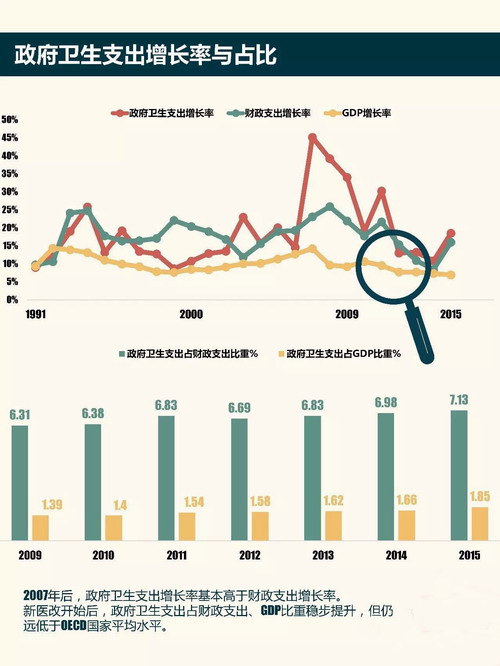 查閱《衛(wèi)生統(tǒng)計(jì)年鑒》與《中國財(cái)政統(tǒng)計(jì)年鑒》,對2009年至今政府衛(wèi)生支出的絕對與相對增長率、支出總額、財(cái)政支出明細(xì)等條目與數(shù)據(jù)進(jìn)行計(jì)算和匯總,試圖解構(gòu)新醫(yī)改7年以來中國政府衛(wèi)生支出。