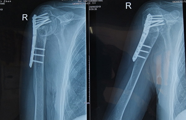 吳阿姨今年七十一歲,一年前因在家不慎摔倒,導(dǎo)致右肱骨近端骨折,在外院給予骨折切開復(fù)位鋼板螺絲釘內(nèi)固定術(shù)后,疼痛卻一直伴隨左右。吳阿姨自認為年齡大了恢復(fù)需要時間,竟獨自忍受疼痛一年多時間。
